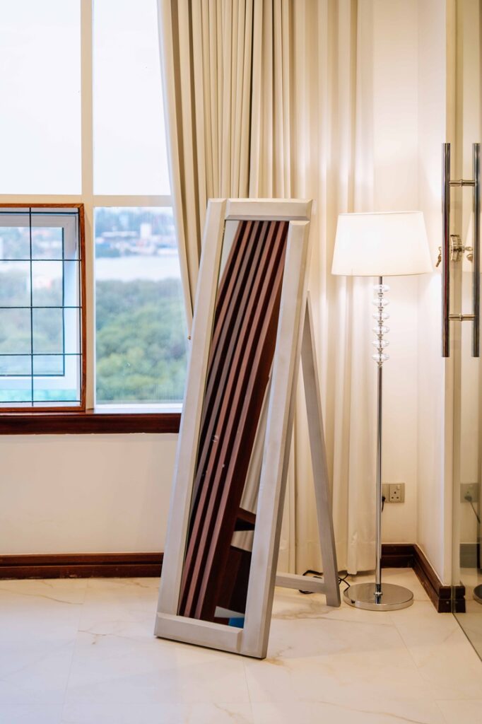 Finally, no bedroom is complete without a full-length mirror. And ours is more than just a reflective surface. Framed in a soft-toned wood with a clean-lined silhouette, the freestanding mirror adds light and dimension to your space while offering a quiet nod to contemporary style.
